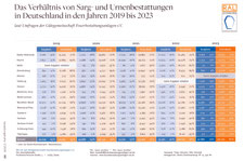 Das Verhältnis von Sarg- und Urnenbestattungen in Deutschland in den Jahren von 2019 bis 2023
